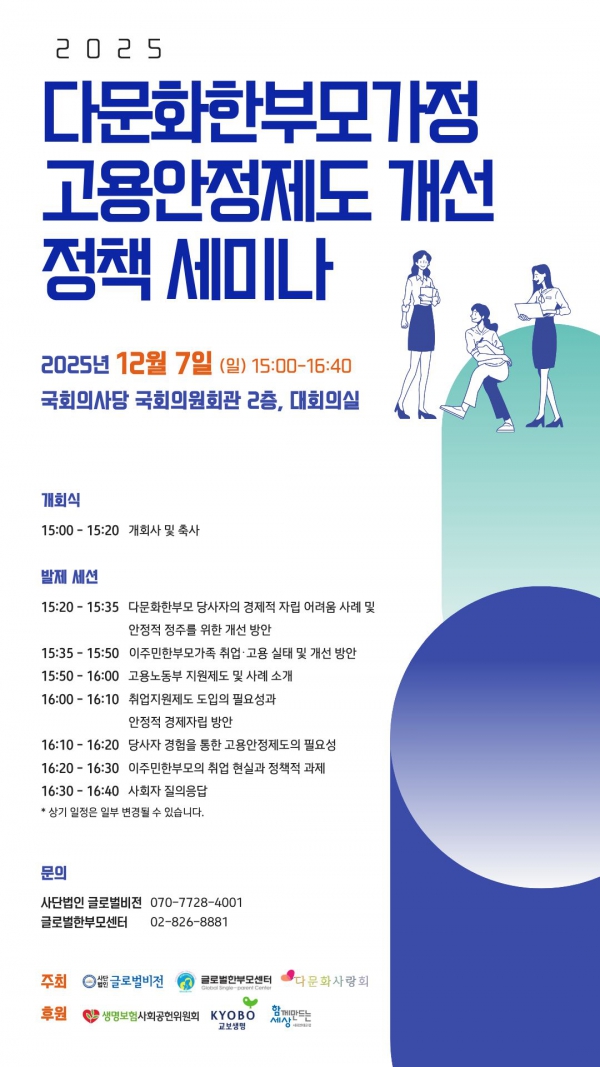 2025년 다문화한부모가족을 위한 정책제안 세미나에 많은 홍보와 참석 바랍니다.