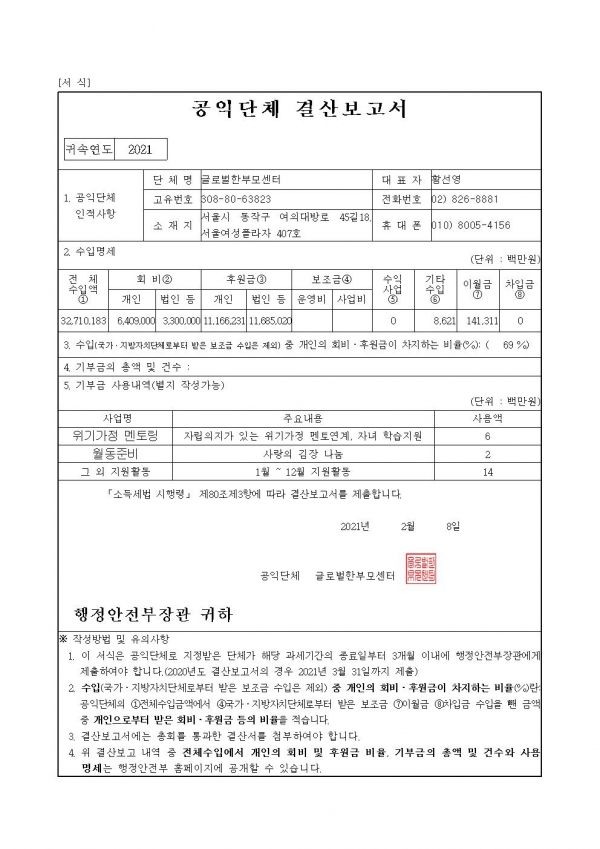 후원계좌: 국민은행 047101_04_237152 글로벌한부모센터