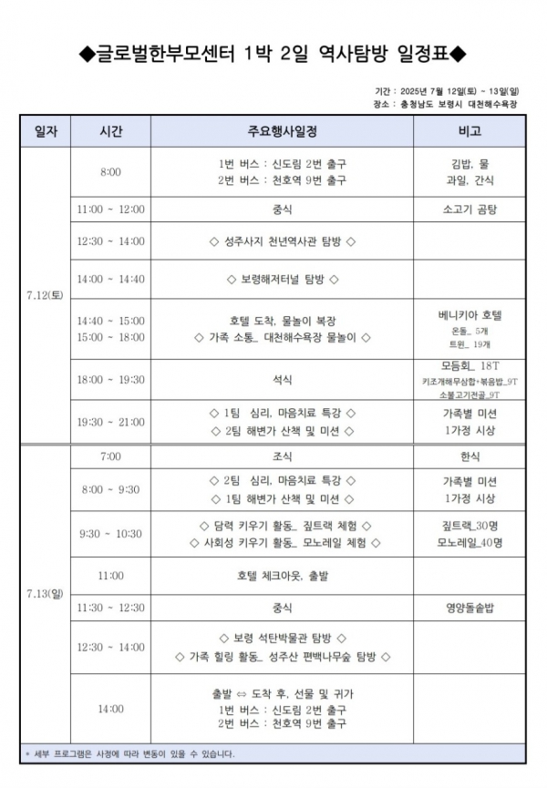 <1박 2일 역사탐방 가족캠프> 모집완료 > 센터공지